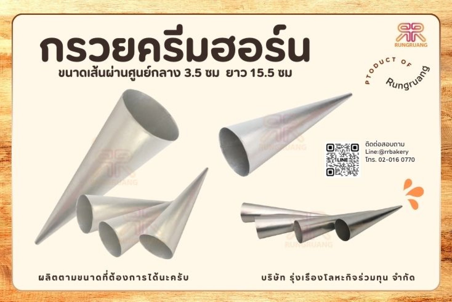 กรวยครีมฮอร์น ลูกค้าสามารถสั่งผลิตได้ตามขนาด และวัสดุที่ต้องการ